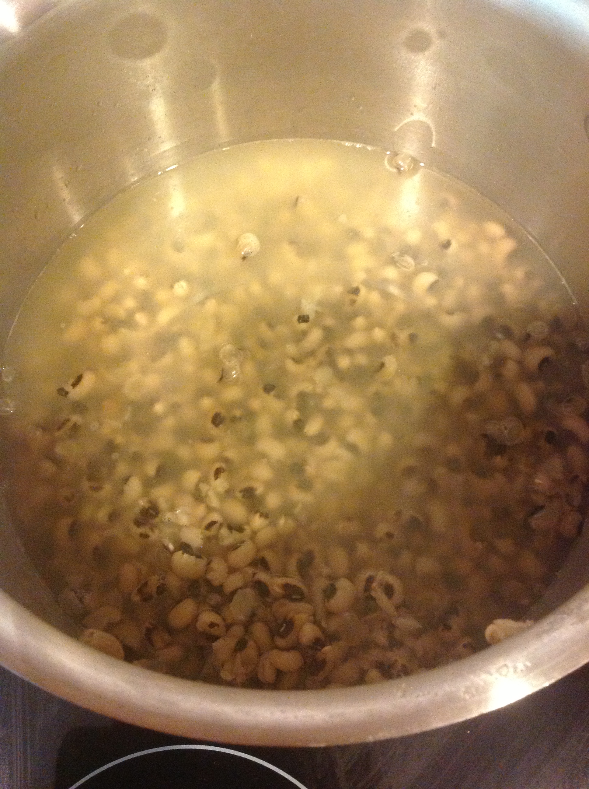 I started this morning by cooking some dry black eyed peas, (BEPs from here on out), but you can use canned BEPs, too.