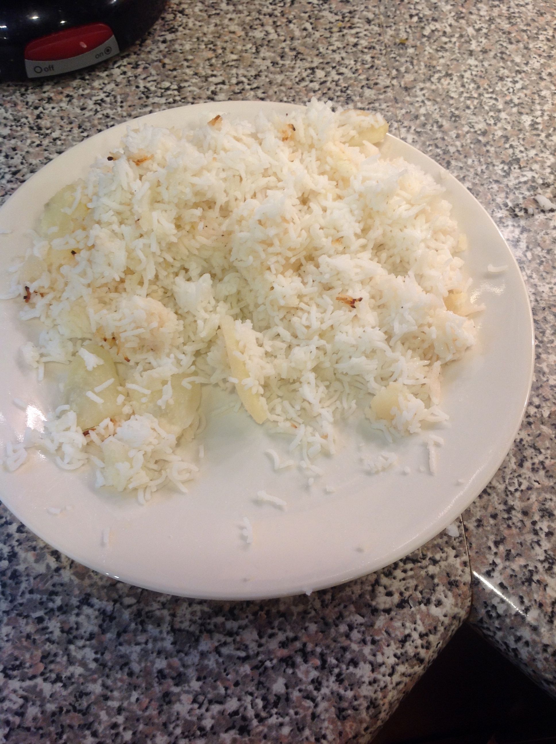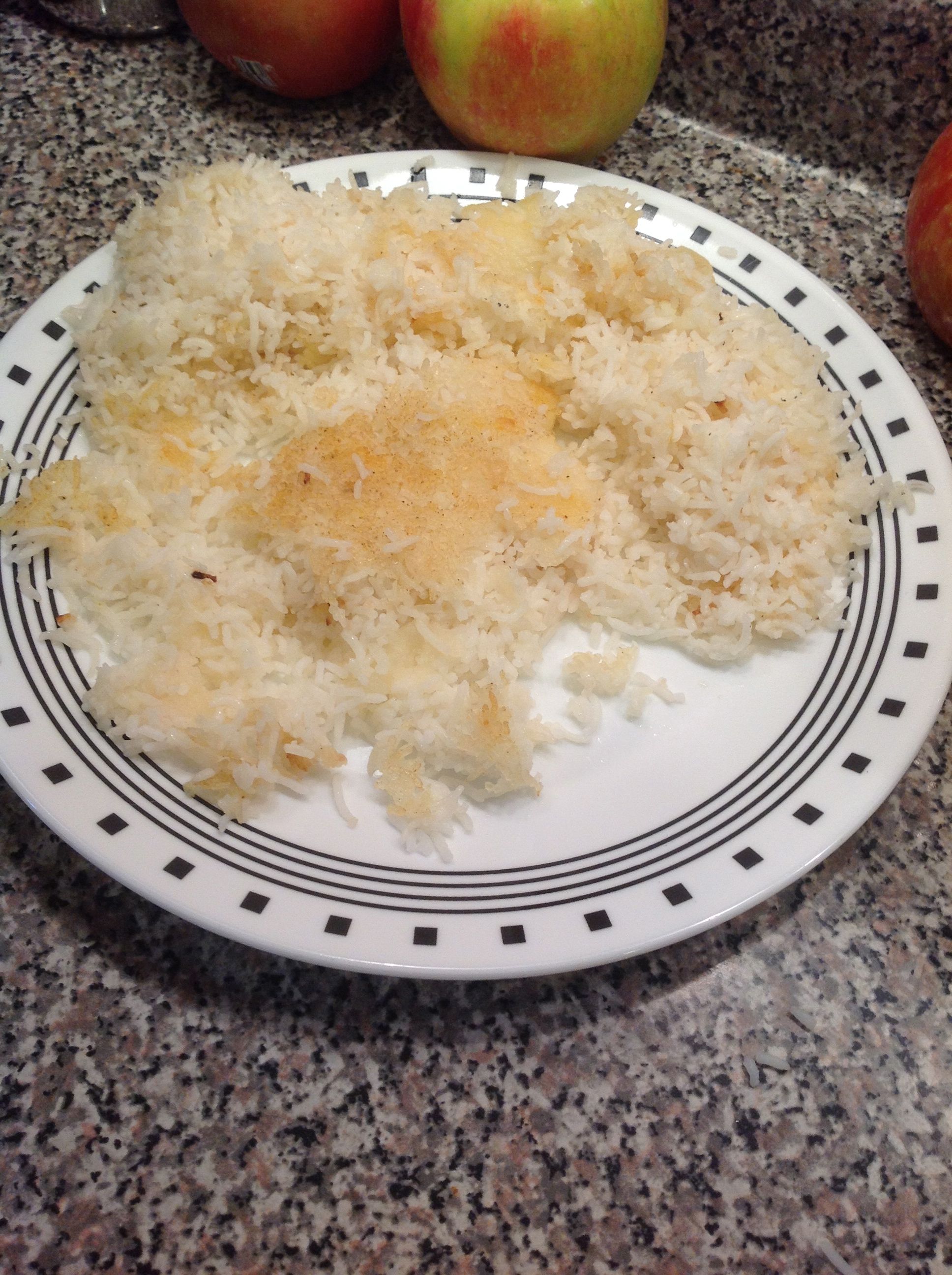 I used all my saffron on the first attempt, but I thought…what the heck. It won’t taste like the Tahdig D grew up with, but it’s rice. How can you screw up rice?