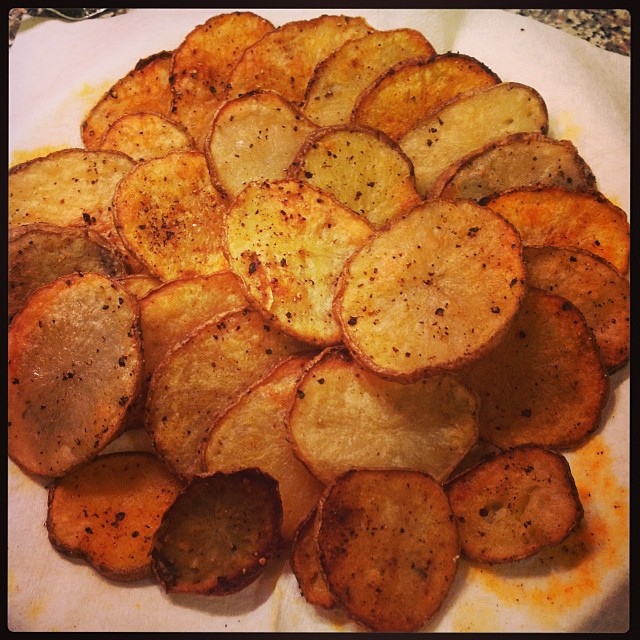 But as much as I love salt, I can’t stand eating potato chips from the store, because they are sooo salty. I think when you get used to eating real food, most processed crap tastes like…well, crap. It’s been a long time since anyone in this house has eaten anything out of a box or bag. Except my 14 year old step daughter, who doesn’t really cotton to most of my cooking. But that’s a topic for a completely different blog.