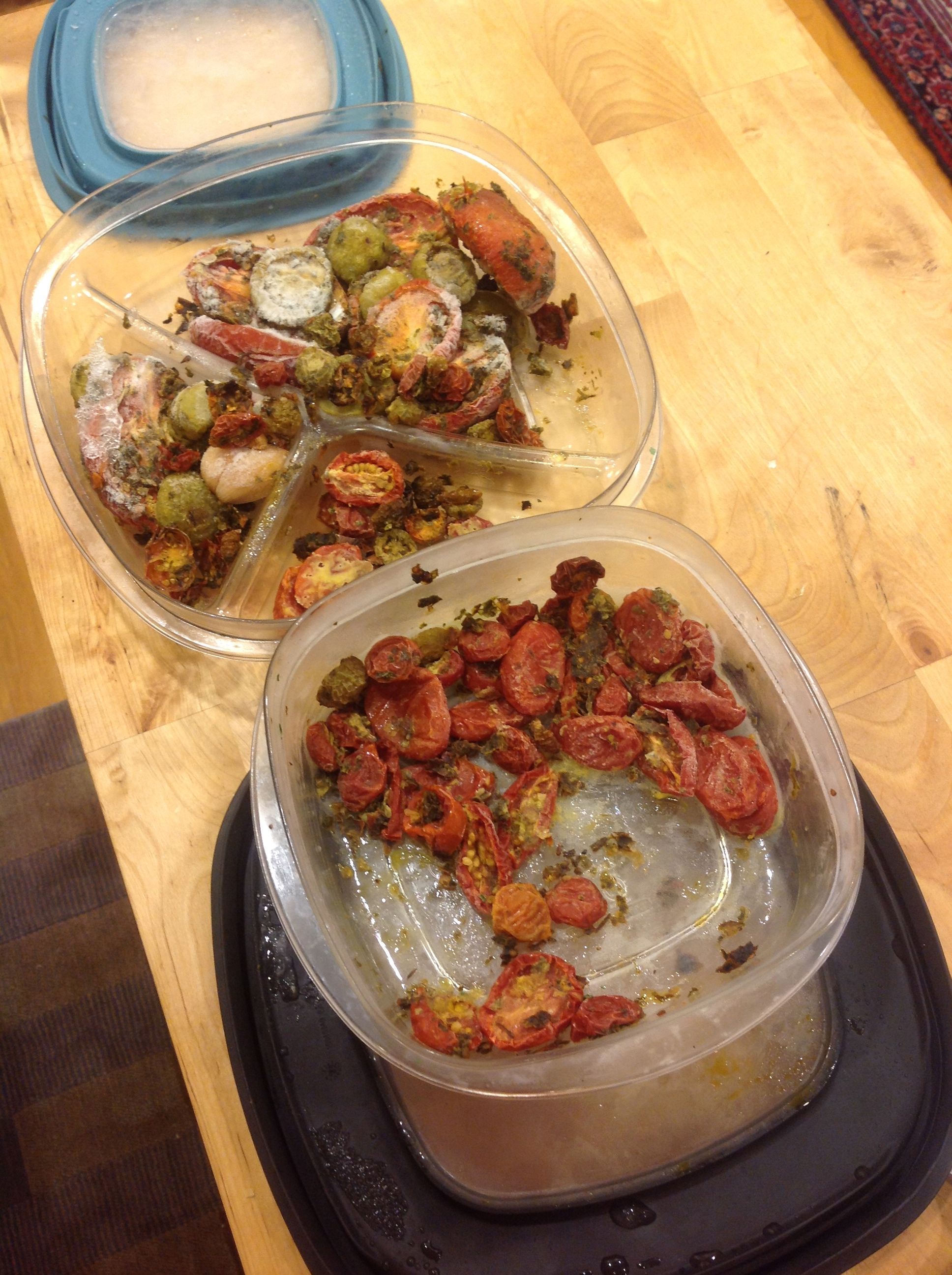 We were out of fresh salsa, so I pulled some slow roasted tomatoes out of the freezer, cut up an onion and some garlic, put them in the food processor with some olive oil and green chilis, and pulsed until they were rough cut. I poured some lime juice in, and thought the whole thing might be better if it was caramelized. Isn’t everything better caramelized? I’ve never really made cooked salsa before, and don’t even know if there is such a thing.