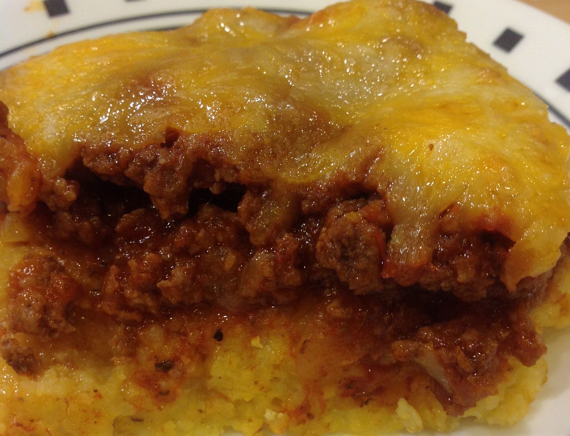 While browning the ground beef in a medium pot in olive oil, mince the onion and garlic. When the beef is almost done, add the onion and garlic, and sauté until opaque. Add tomato sauce and let simmer for 15 minutes.