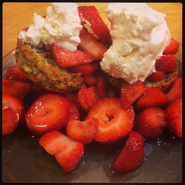 It occurred to me that this bread would make a *great* strawberry shortcake. And since there was some heavy cream leftover that we used for the pumpkin pie last week, it seemed like the obvious choice.
