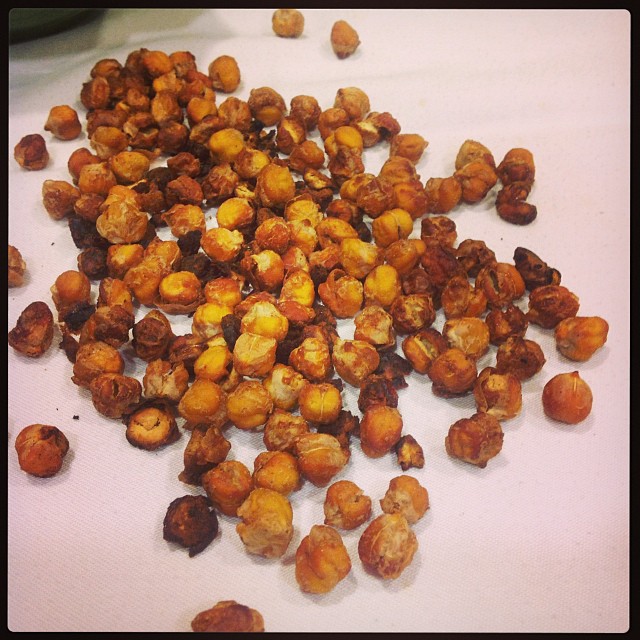 When I posted the recipe for spicy chickpeas earlier this month, I had people from all over sending me their ideas for other sweet and savory roasted chickpeas. I don’t remember who sent this one, but it was great! Thank you!