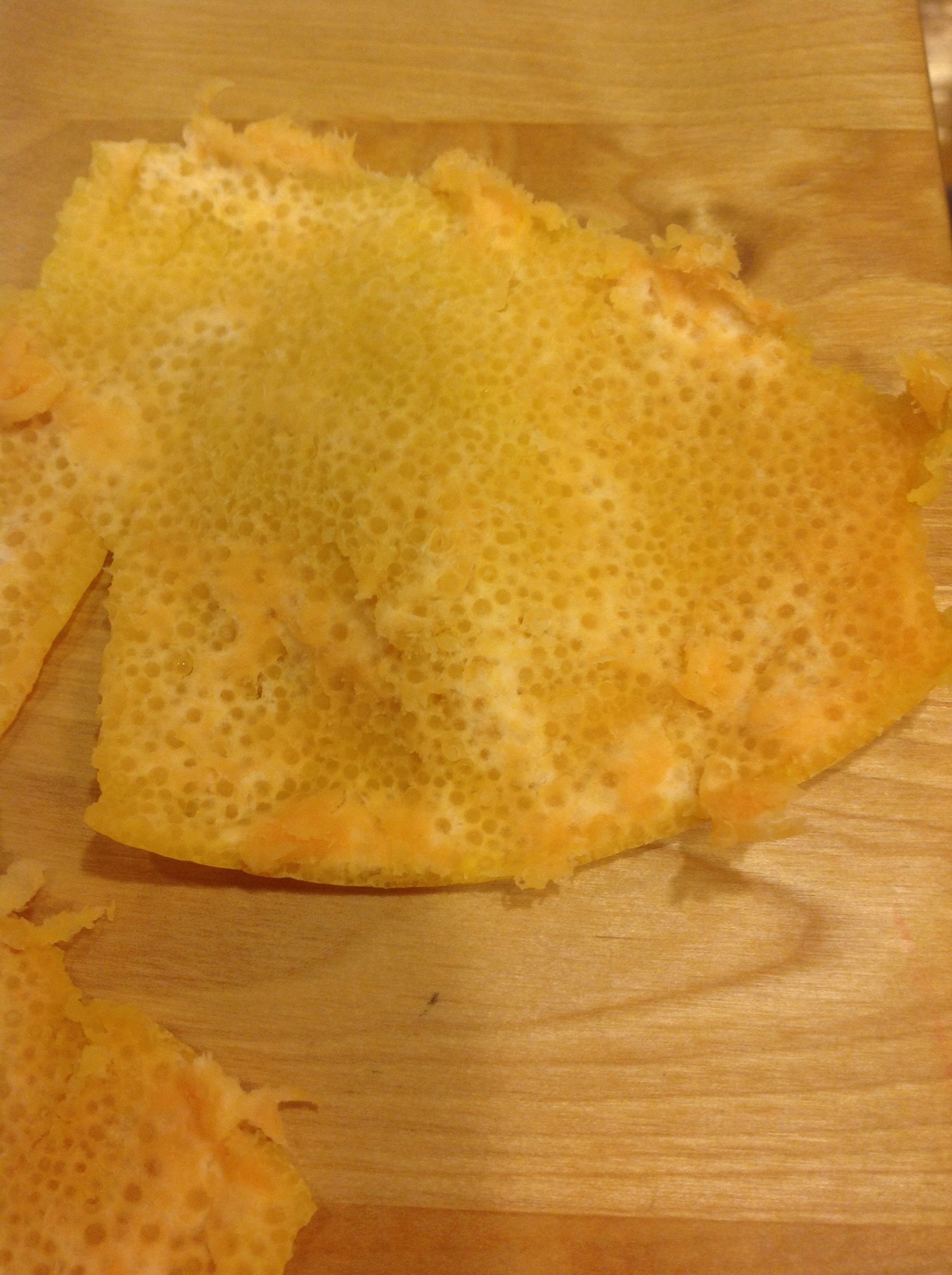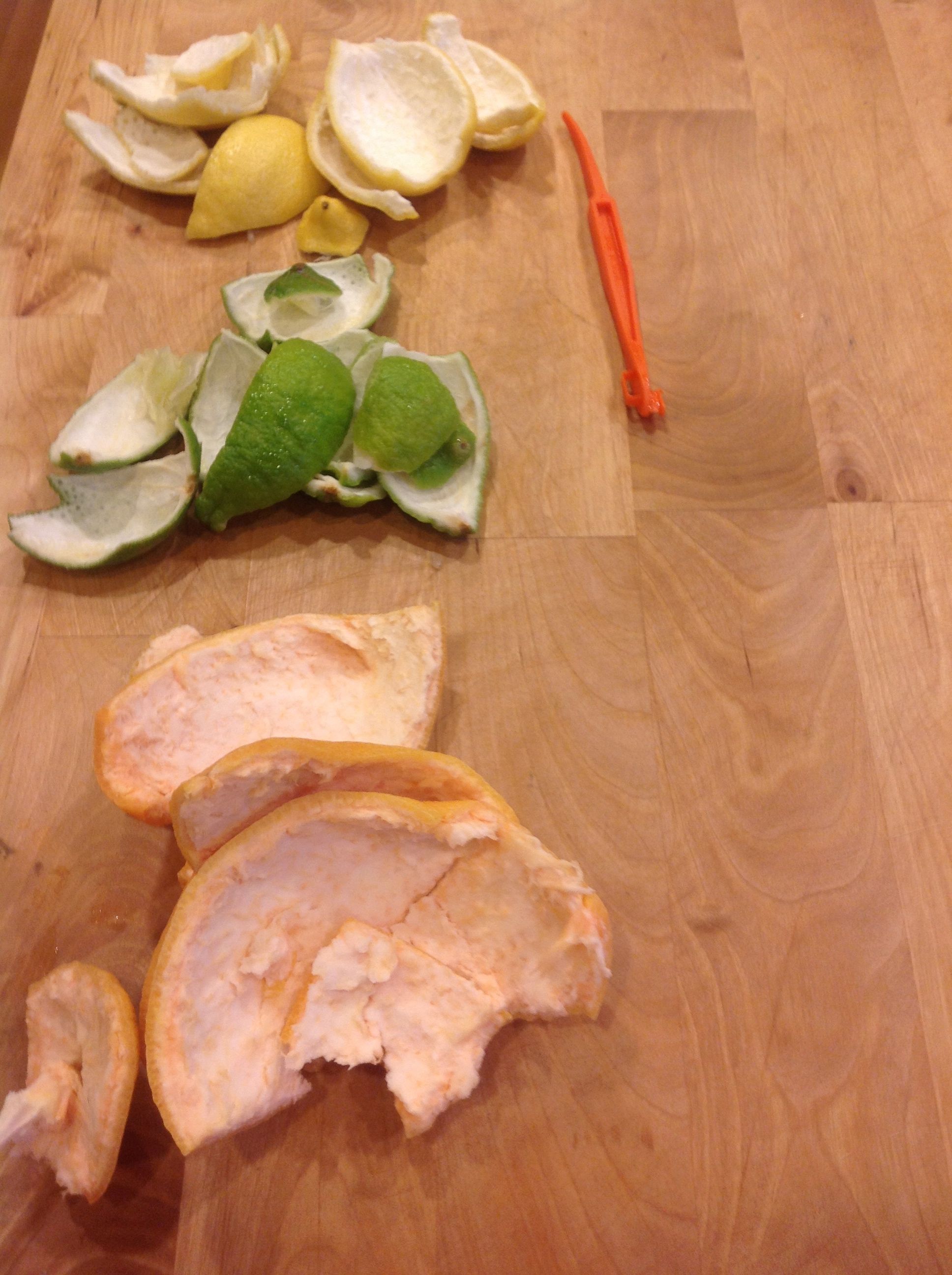 The lemon and lime was way more difficult in the pith removal department. The grapefruit was pretty easy, but the pithless grapefruit skin reminded me of a disturbing movie.