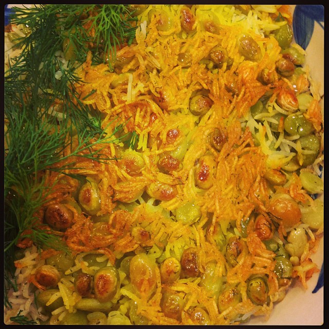I made masoor dahl and socca tonight, and thought I’d give this dish a try again, instead of the cardamom rice. I was pleasantly surprised by how the tahdig turned out. Crispy dill infused lima beans? Heaven.