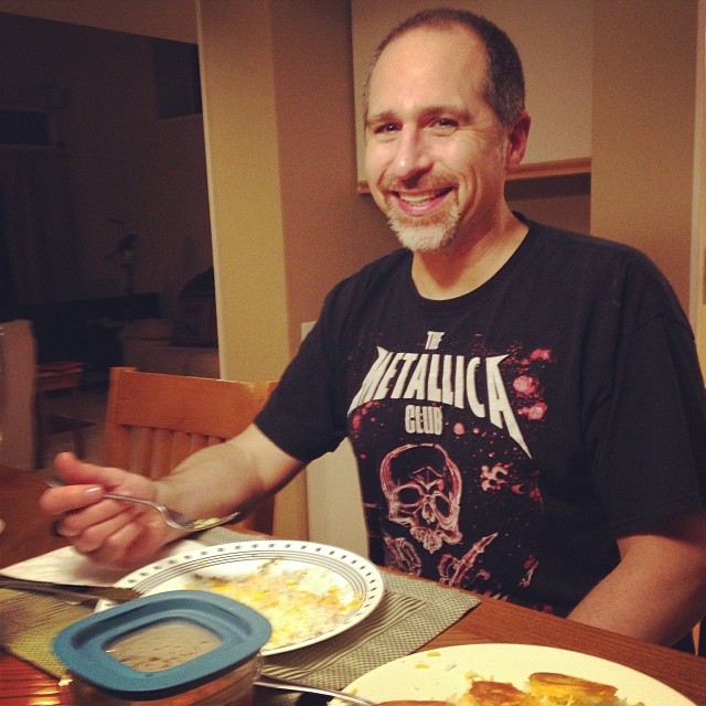 The rice was separated and fluffy, the potatoes were crispy and delicious, but there wasn’t a lot of actual rice tah dig. In between mouthfuls of this paired with ghormeh sabzi and fesenjun, Darius said that I’m being too particular. Perhaps. I think his face pretty much says it all: