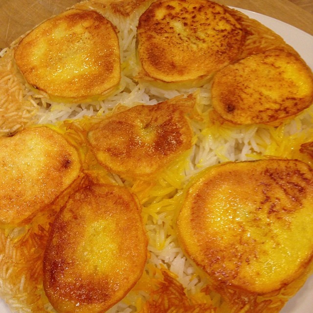 2 responses to “Potato Tah Dig (Chelo)”
