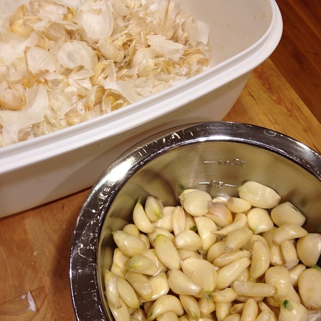 I use a lot of garlic. I had about 15 heads that we’re sprouting and some threatening to go bad, but I was dreading peeling them. Then I saw a video posted on Facebook about how to peel them all at once. I promised to post the results if it worked, and it totally did.