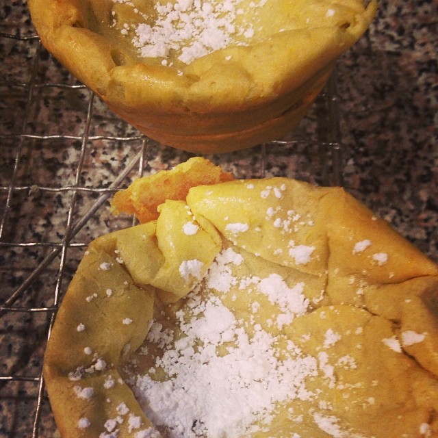 Grease muffin tins well and distribute batter evenly between the cups (about 1/2 full). Bake for 15-20 minutes, or until puffy and golden on top.