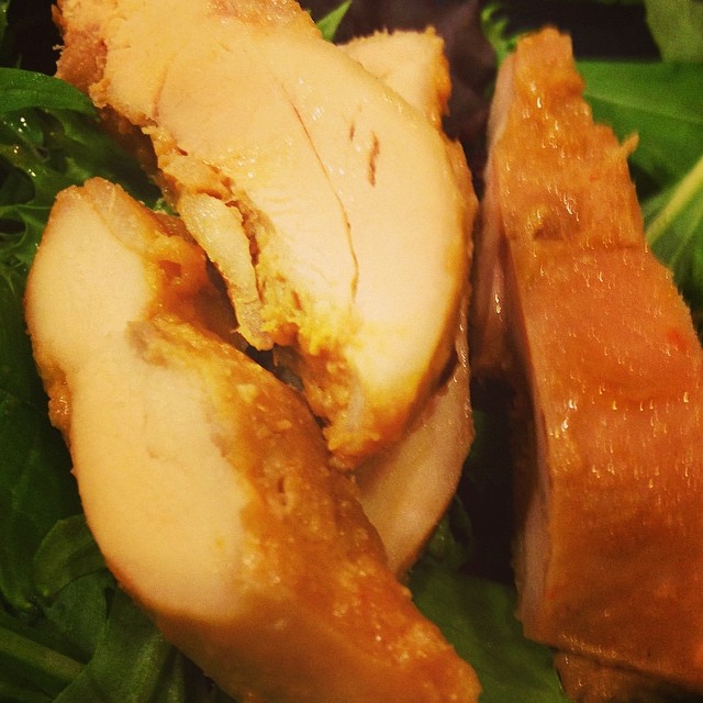 Bake at 425 for 30 minutes on a roasting pan, turning the chicken over halfway through the cooking time. Serve over rice or quinoa.